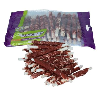 Möchten Sie Ihren Hund mit einem natürlichen Snack verwöhnen, treffen Sie mit Braaaf Rollsticks Rind mit Kabeljau eine gute Wahl. Die gerollten Sticks bestehen aus schmackhaftem Rind in Kombination mit Kabeljau und punkten nicht nur mit einem guten Geschmack, sondern laden auch zum ausgiebigen Kauen ein.