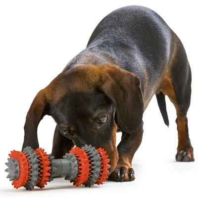 Spielzeug für mittlere & große Hunde, Zahnknochen für die Pflege von Zähnen & Zahnfleisch, mit massierenden Noppen, robust & dennoch weiches Material, aus Naturkautschuk; in zwei Größen erhältlich