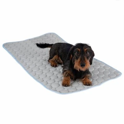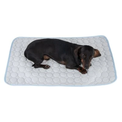 Kühlende Decke für Katzen und Hunde, kein Vorkühlen, kein Kühlgel, kein Strom nötig, sofort einsatzbereit, kühlender Effekt durch besondere Fasern mit optimaler Wärmeleitfähigkeit, Farbe: grau / blau
