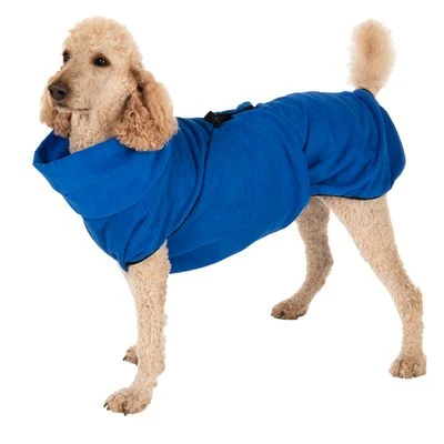 Ganz gleich, ob nach einem regnerischen Spaziergang, einer Schwimm-Session im See oder einem Bad in den eigenen vier Wänden – dieser kuschelige, blaue Bademantel ist für Hunde die das Wasser lieben ein praktischer Begleiter!