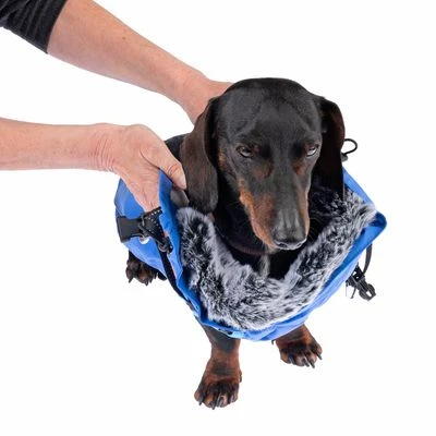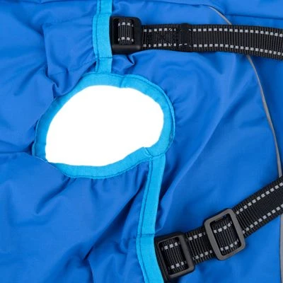 Der TIAKI Hundemantel mit Geschirr Arkon in leuchtendem Blau vereint Funktionalität und Stil wie kein anderer! Dieser Hundemantel verfügt über ein integriertes Geschirr, sodass du kein weiteres Accessoire für eure winterlichen Abenteuer brauchst – und liefert gleichzeitig Polar-Ästhetik sowie Wärme und Komfort für deinen vierbeinigen Begleiter. Die wasserfesten Eigenschaften des Obermaterials sorgen dafür, dass dein Hund auf Spaziergängen bei leichtem Regen oder Schnee weithin trocken bleibt. Die Innenseite ist mit kuscheligem Fleece gefüttert und wird durch einen hohen Kragen aus weichem Fell-Imitat ergänzt, die beide zusammen einen hervorragenden Schutz gegen klirrende Kälte bieten.