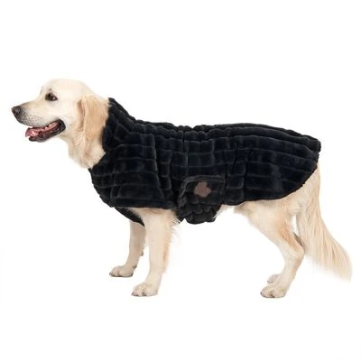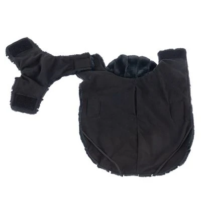 Edler Wintermantel für Hunde, schützt Bauch und Brust vor Kälte, umklappbarer Kragen, kuschelig-weiche Fleece-Innenseite, Klettverschluss für schnelles Anziehen, mit Beinschlaufen, Farbe: schwarz