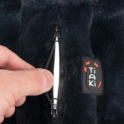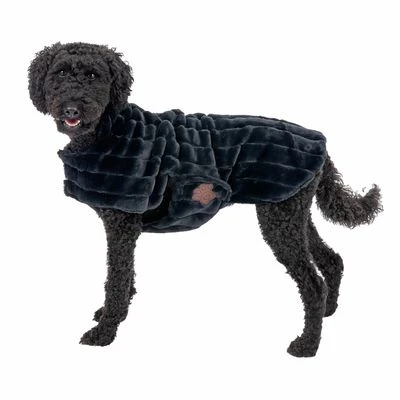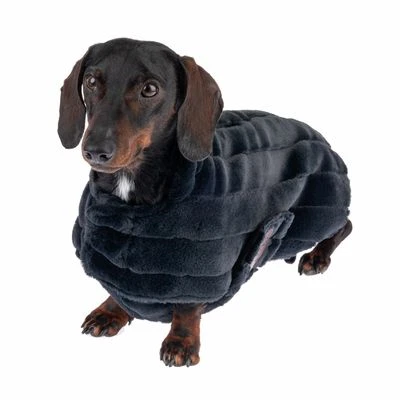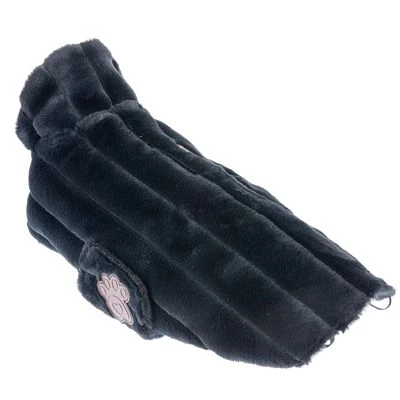 Der Wintermantel ist aus kuschelig-weichem Fellimitat gefertigt und überzeugt mit einem edlen und zugleich funktionalen Design. Beinschlaufen sorgen dafür, dass der Mantel nicht verrutscht, während ein Klettverschluss das Anziehen erleichtert. Ein umklappbarer Kragen schützt den Halsbereich vor Wind und Wetter. Der TIAKI Hundemantel Teddy Fleece ist mit niedlichen Details wie einem Pfotenpatch gestaltet, ansonsten aber dezent und zeitlos gehalten – in klassischem Schwarz.
