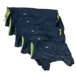 | Rückenlänge (A) mittig | Kragenhöhe (B) mittig | Halsumfang (C) variabel durch Klettverschluss | Brustumfang (D) variabel durch Klettverschluss | Gesamtlänge (inkl. Kragen) (E) |