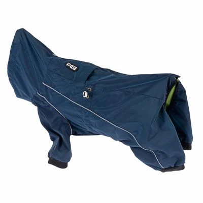 Ganzkörper-Overall für Hunde, für Rundum-Schutz bei Nässe, Kälte und Schmutz, aus wasserabweisendem Material, mit Reflektor-Streifen, wärmendem Fleecefutter, mit Reißverschluss, Farbe: dunkelblau