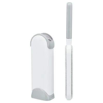 Moderne Fusselbürste mit Reinigungsstation, befreit Polster und Textilien effizient von Tierhaaren, beidseitig verwendbar, einfache Anwendung und Reinigung, schlichtes Design, Farbe: weiß / grau
